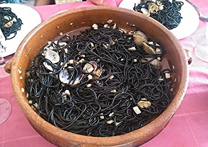 - Put the remaining wine in a large pot and complete fillinh with water. Bring it to boil, add salt and the pasta.