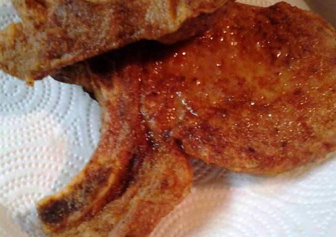 - Add pepper flour. See recipe, pepper flour. I usually have it in the zip lock bag. Then I had pork chops. Shake till coated. The shake off excessive flour.