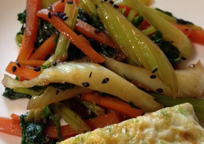 - Heat oil in a frying pan. Add the celery stalks and carrots. Stir fry for a few minutes on medium until the celery and carrots are starting to get a little softer.