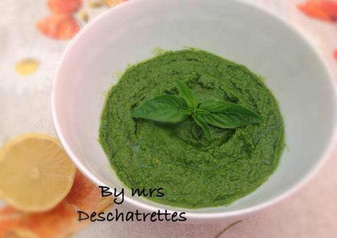 - Put all ingredients in a blender except the olive oil and lemon jus. Crush them until smooth.
