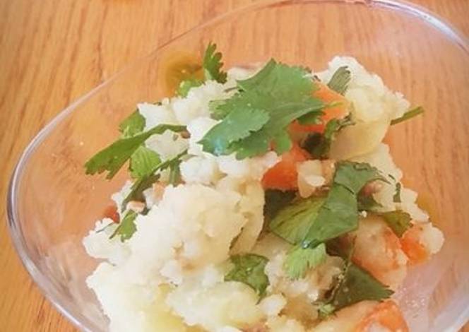 - Mash the potatoes roughly. Add the chopped anchovy and season with salt and pepper and mayonnaise. Mix all together.