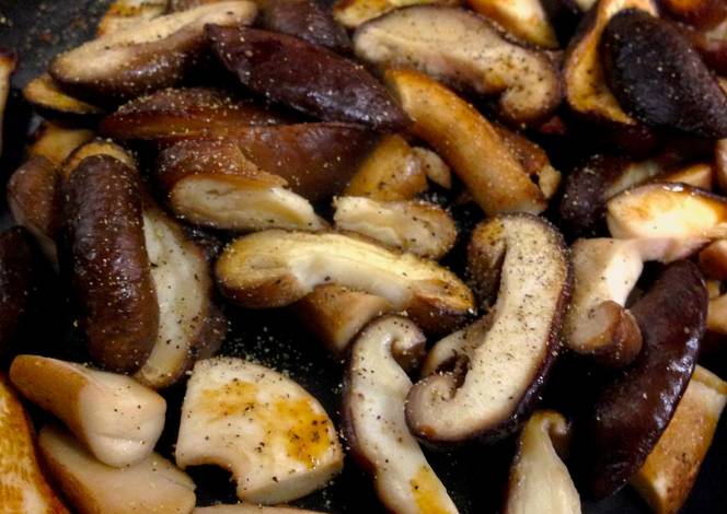 - Stir a few times if needed to cook any uncooked spots until shiitake slices are soft and juicy. Right at the end, quickly mix in the soy sauce and sprinkle with pepper. All ready to have as side dish or put in your lunch ^o^