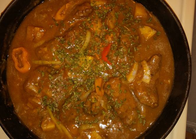 - Add a package of brown gravy mix add both or water according to the direction on package. Simmer til gets creamy and potatoes are nice and tender top with chopped parsley