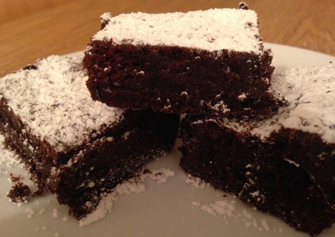 - Transfer the mixture to the prepared tin. Bake for 15 minutes then turn the heat down to 160C/Gas 3 and cook for another 10-15 minutes until just firm. Cool in the tin, cut into squares and dust with icing sugar to serve.