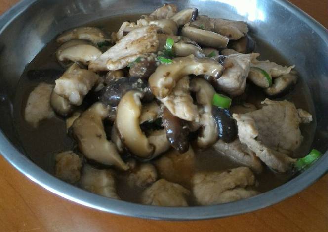 - Slice pork, shiitake mushrooms & finely chop the green onions