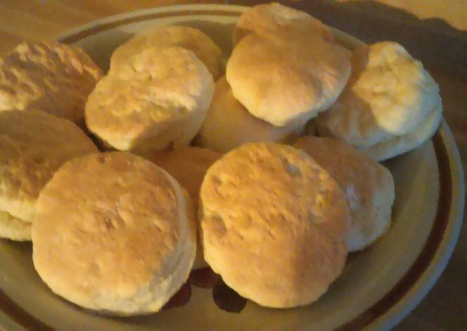 - Repeat entire process 2 more times, beginning with pressing into a 3/4-inch-thick dough rectangle (about 9 x 5 inches). Press or pat dough to 1/2-inch thickness on a lightly floured surface; cut with a 2-inch round cutter, and place, side by side, on a parchment paper-lined or lightly greased jelly-roll pan. (Dough rounds should touch.)