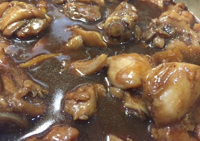 - Add chicken into the mixture and stir fry altogether until chicken meats are cooked and browned.