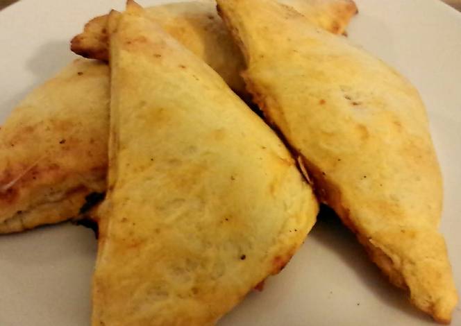 - Lay out all croissants, and cut to even triangles. Scoop insides onto 4, and use remaining 4 as tops. Seal around edges, and cook for 10-12 minutes.