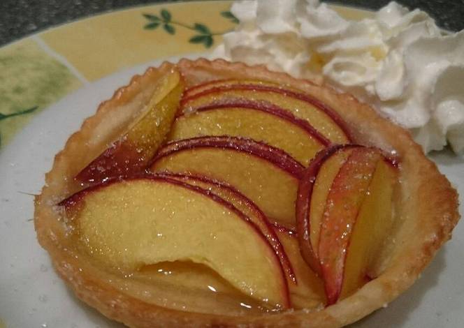 - Then lay the pastry onto a lined baking sheet and top each tart with the slices of one peach, laid into a ring formation leaving about half a centremeter on the border or in a line into the pastry. (I used a Yorkshire pudding baking tray. The pastry fit perfectly.)