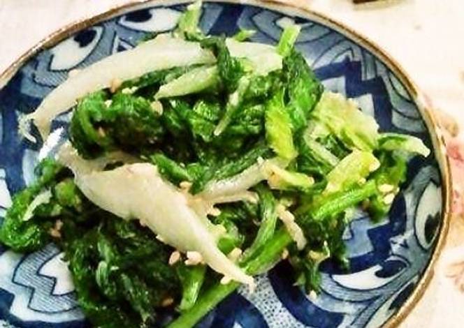 - When the vegetables have cooled, squeeze them to get rid of the excess water. Put into a bowl, add the sauce and mix well.