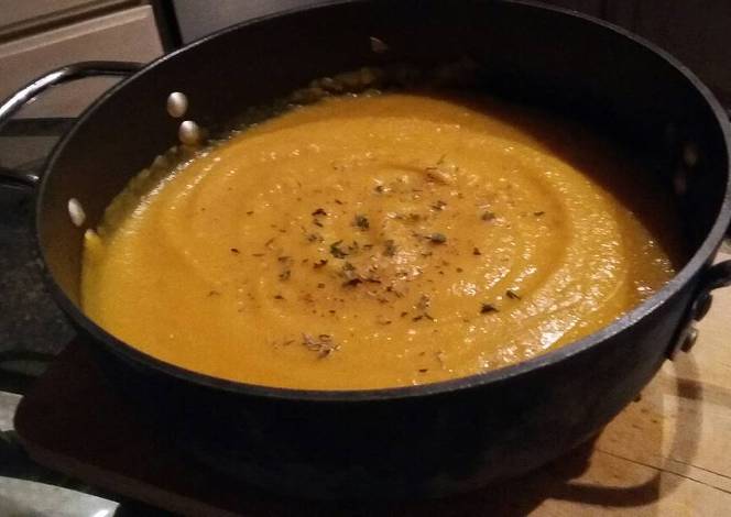 - Add oil to a large pot and saute onions for 5 minutes on medium heat. Add potatoes and carrots and cook for 10 minutes with pot covered (Optional add nutmeg) Stir
