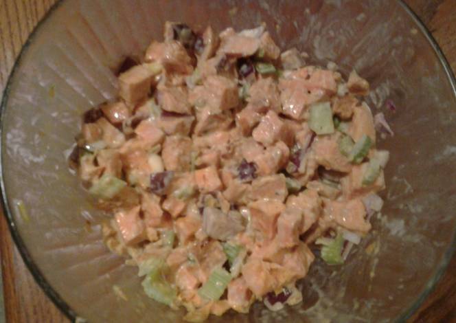 - While potatoes are baking chop the celery and red onion. Place in bowl with walnuts