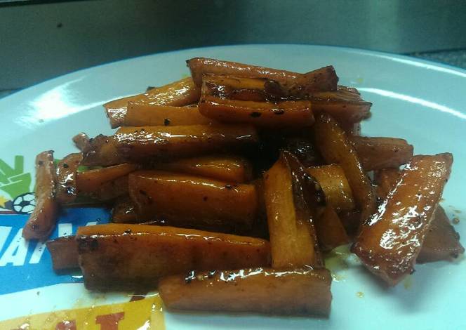 - Reduce heat to low, stir well again ensuring all carrots are covered and let the carrots simmer in honey coating for another 7 minutes, or until carrots are soft to your liking.