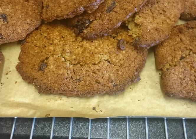 - Remove from heat and add the flour, bicarbonate of soda, oats, cinnamon powder and raisins. Add the beaten egg and boiling water and mix well