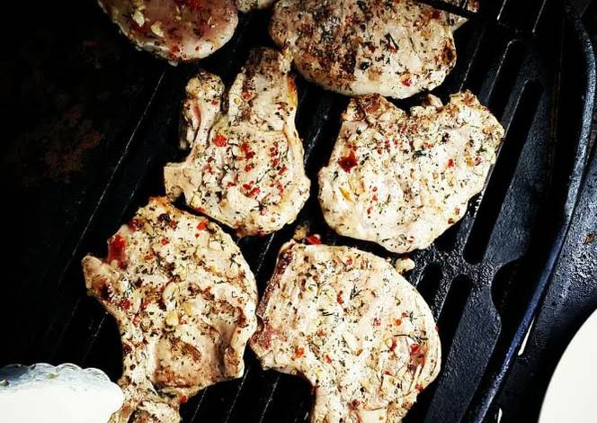 - Then put all the herbs in the olive oil. Give it a good stir put in salt and pepper to taste. Then marinade the pork in the mixture for 1hr or overnight for great fusion of flaovours.