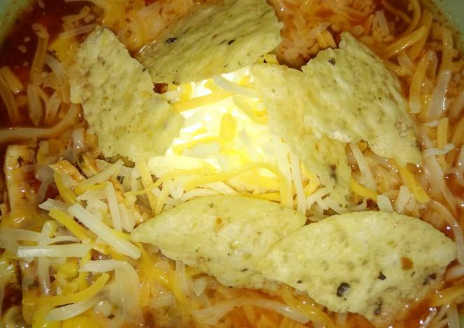 - 1 Optional Garnishes- avocado, shredded cheese, sour cream, lime, and tortilla chips (broken into pieces)