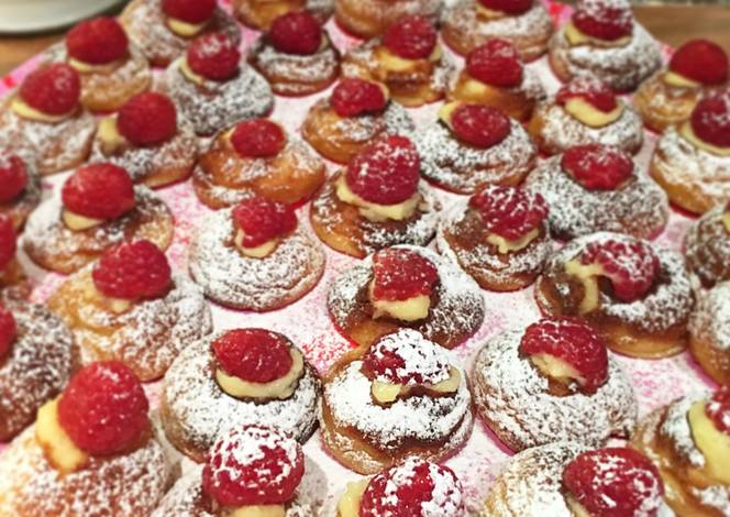- Using a piping bag, pipe walnut-sized balls onto a greaseproof baking sheet, well distanced, and bake for 18 minutes or until golden brown. Let it cool completely on a cooling rack before filling.