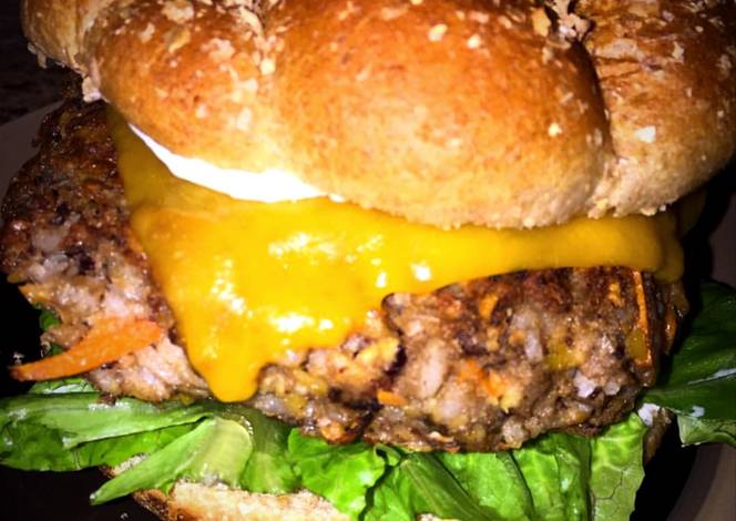 - Rinse and drain can beans well. Chop onion slightly, add beans garlic,onion to cusineart blend well. Add mixture to a large bowl add in the rest of your ingredients, eggs, breadcrumbs, rice, carrots and seasonings combine well. Now you can form your burgers.