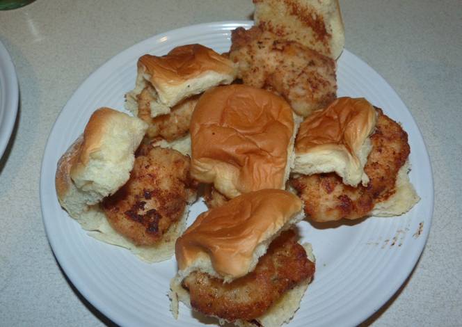 - Place one piece of chicken per toasted roll, top with a pickle and sriracha mayo and enjoy!