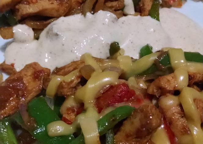 - I have garnish mine with thin strips of cheese, and served with fresh salsa
