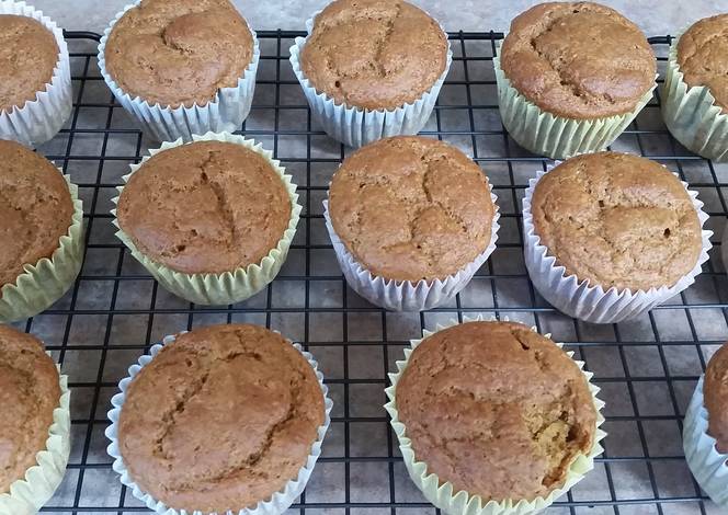- Bake in pre-heated oven at 350° for 45-59 min. or until knife inserted into center of muffin comes out clean.