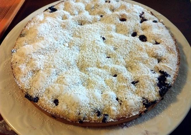 - Divide mix in half. Place half in bottom of pan and cover with floured berries place remaining batter over berries.