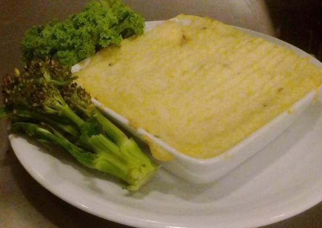 - Using individual pie dishes or a large layer the celery & carrot mixture on the bottom, layer grated cheese next then fish mixture on top.