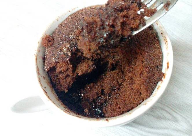 - Add flour, castor sugar, cocoa, baking powder and salt into a mug. Mix them well with a fork.