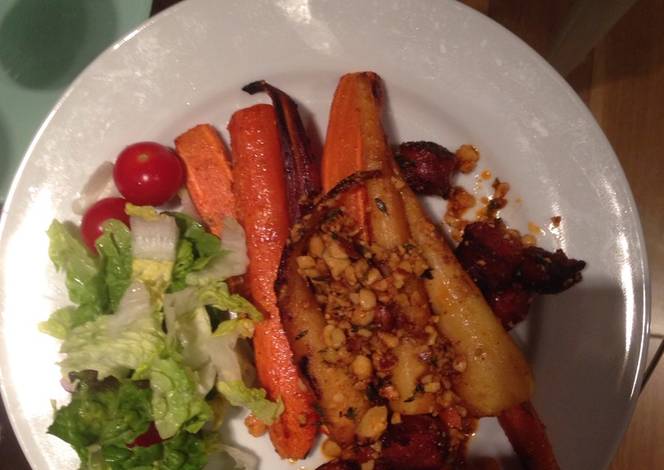 - Roast the carrots and parsnip for 5min in a pan at medium heat with a tablespoon of coconut oil.