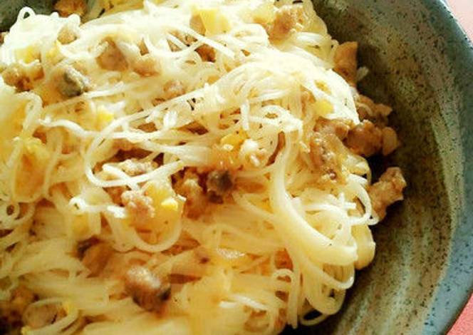 - Add the somen into the pan along with some more sesame oil. Stir fry on high but do not over mix or the somen will get too soft and sticky. Season a beaten egg with salt & pepper and pour over the noodles. Turn off heat and let the egg slowly cook as the pan cools down.