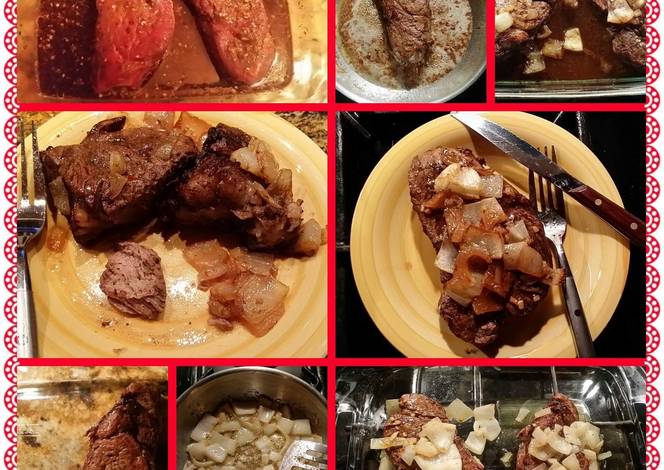 - Place the filets in a casserole dish. Add a little bit of worchestershire sauce , just enough for each filet to sit on. Top them with your onions. Place in the oven uncovered.