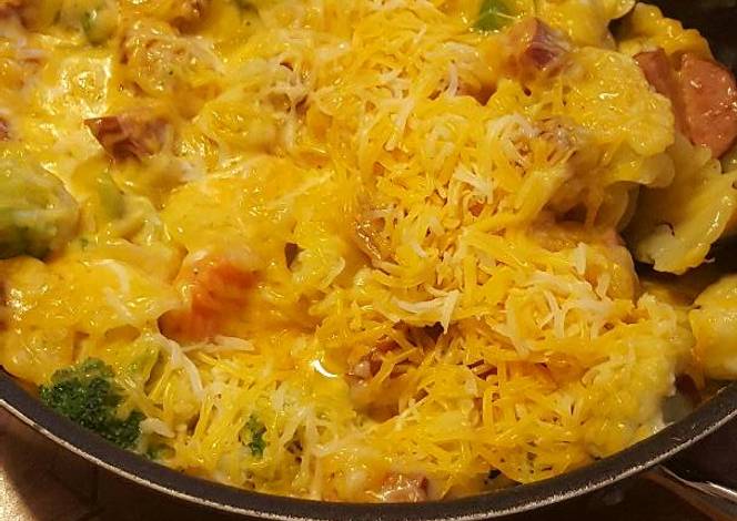 - Add potatoes, water and sauce mix. Cook covered on medium heat for 18-20 min stirring occasionally