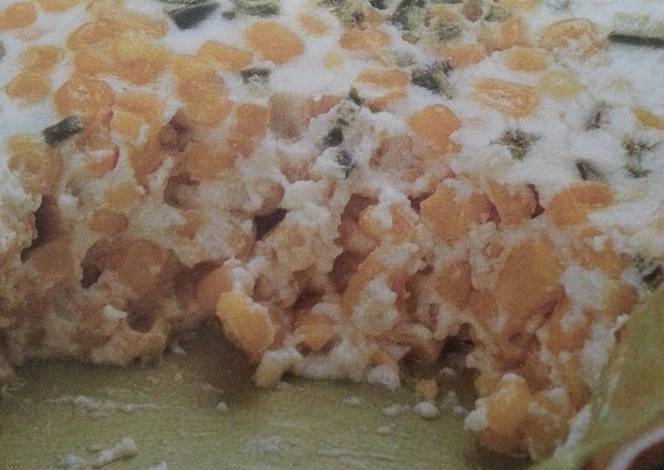 - Pour mixture over corn mix well bake 30 minutes or until bubbly and edges begin to brown