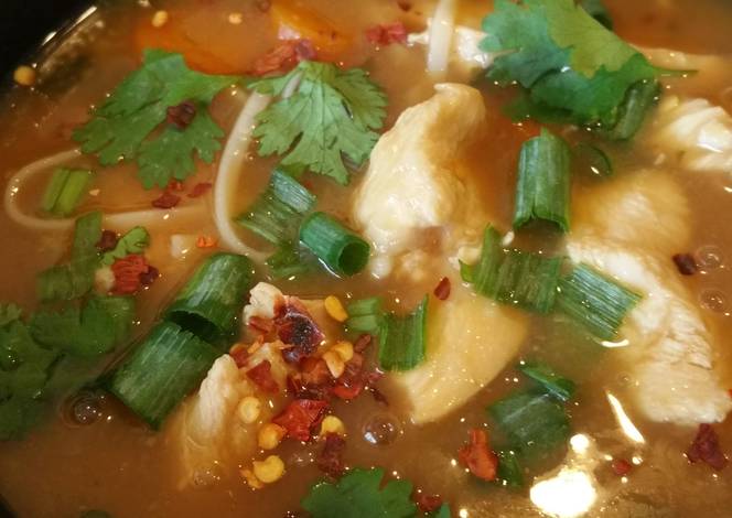 - Once soup has cooked for about 20 minutes get your noodles and pour soup over noodles top with green onions and cilantro and enjoy :)