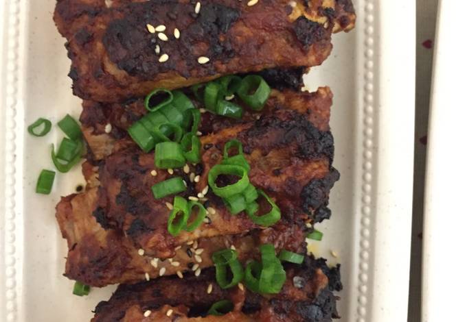 - Stir together all the ingredients from the garlic to the paprika to make the BBQ sauce. In a zip-loc bag, add the ribs and half the sauce. Either marinate them overnight, or for 4-6 hours with a little extra sauce. Store the leftover sauce for later use.