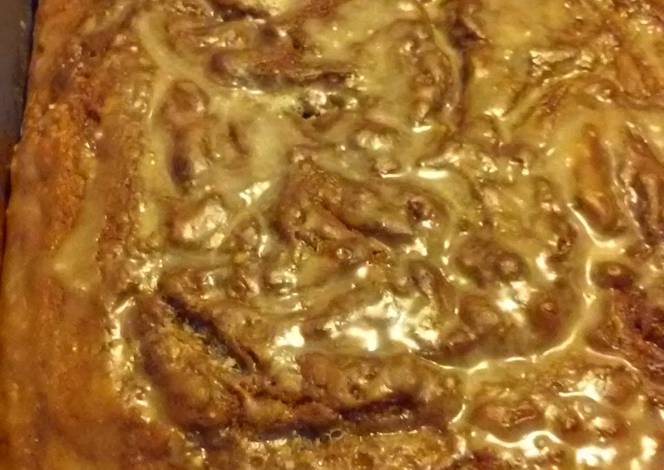 - In a medium bowl mix the powdered sugar, milk, and vanilla together with a whisk. Drizzle evenly over the warm cake. Serve warm or at room temperature. (IF YOU LIKE GLAZE LIKE ME THEN DOUBLE IT!)