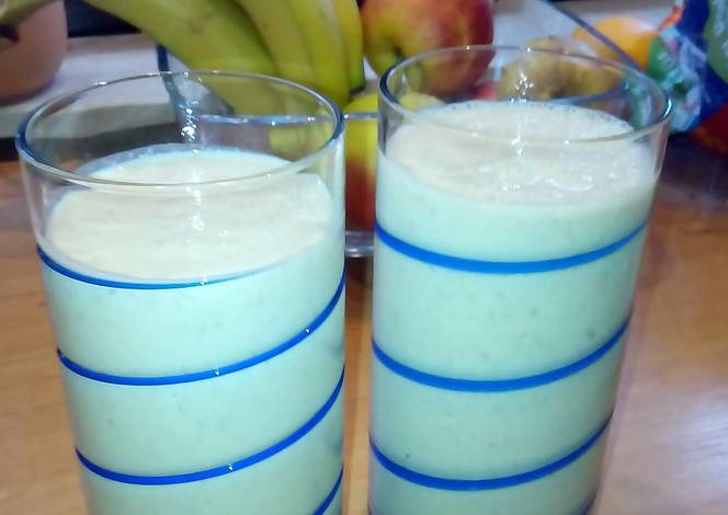 - Clean and peel da fruuuts. Add the oatmeal and fruits to the blender. Then add one cup milk. Blend heavily...please.