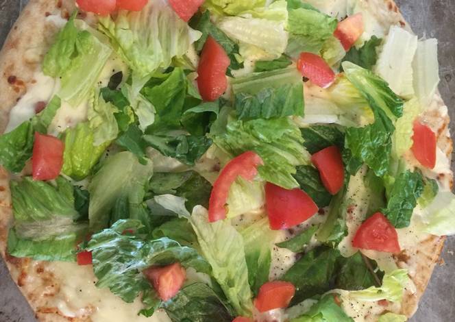 - After the crust is done cooking and the cheese is melted, etc. take it out of oven and spread the mayo on top of the cheese.
