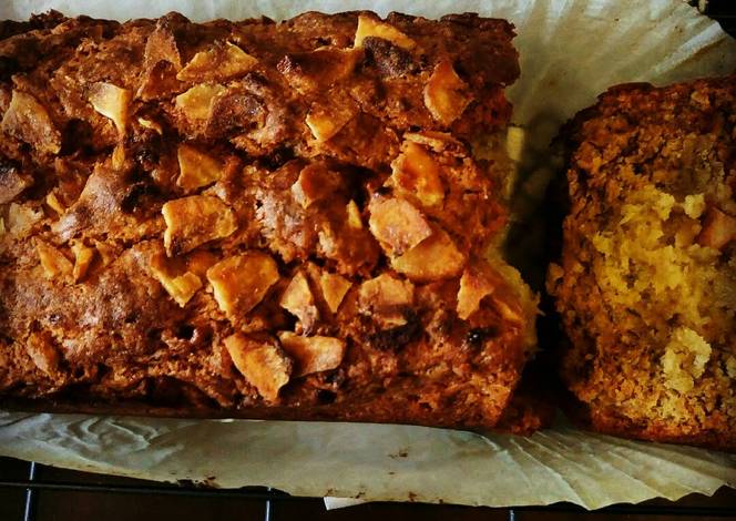 - Combine the two, mixing gently until all of the flour has been soaked up by the wet ingredients. Spoon into a small loaf tin or large muffin cases