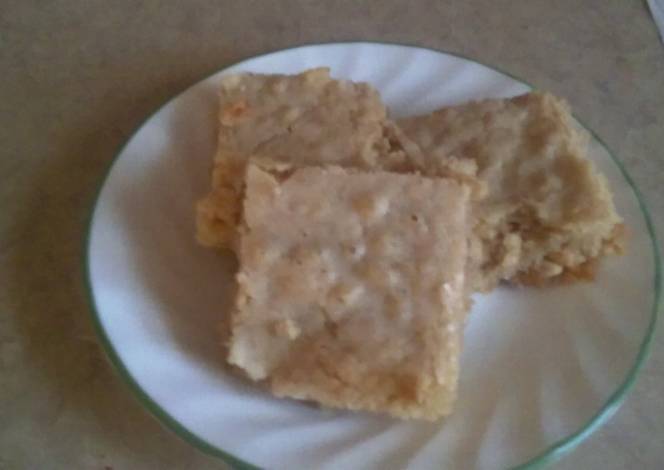 - Spray a standard cake pan with cooking spray.over med heat melt butter and pb and while its all melting together put egg and sugar vanilla and flour in a bowl then add in pb mixture and stir together and pour in pan and put in oven for30 minutes and serve with ice cream