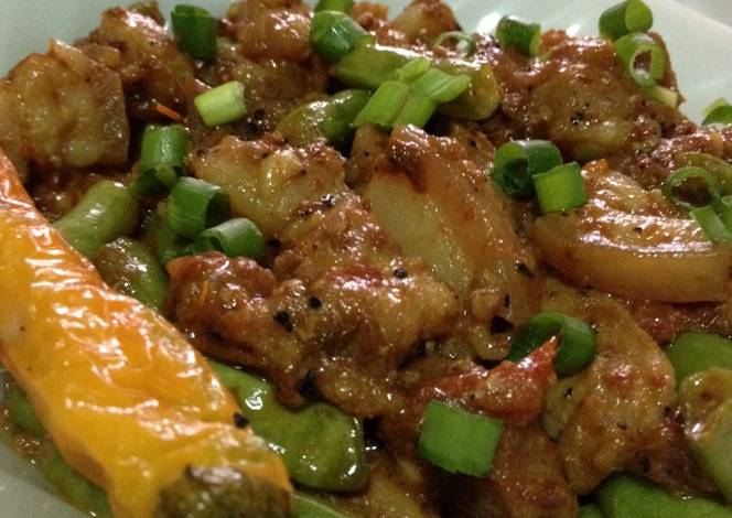 - Add sliced green beans or eggplants to the wok, mix in and cover. Reduce the liquid that seeped out from the veggies or until veggies are cooked.