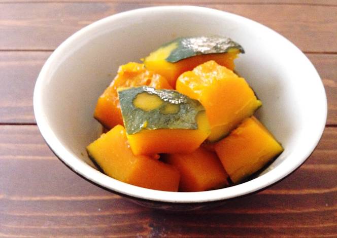 - Put Dashi Soup stock, KABOCHA (Skin side down), Soy sauce and sugar in a pot. Cover with a lid. Then Bring to a boil over low-medium heat. Simmer for about 10 to 15 minutes until KABOCHA is tender. (Don"t over cook!)