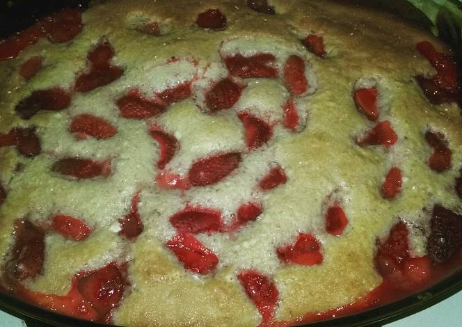 - Dice strawberries sprinkle over batter pour remaining batter on top of strawberries