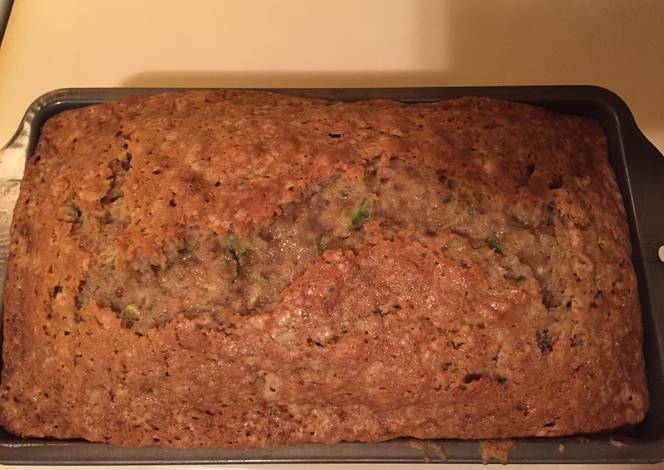 - Preheat oven to 350. Spray loaf pan. Cut ends off zucchini and shred on a cheese grater (small holes) 2 cups or one large zucchini.