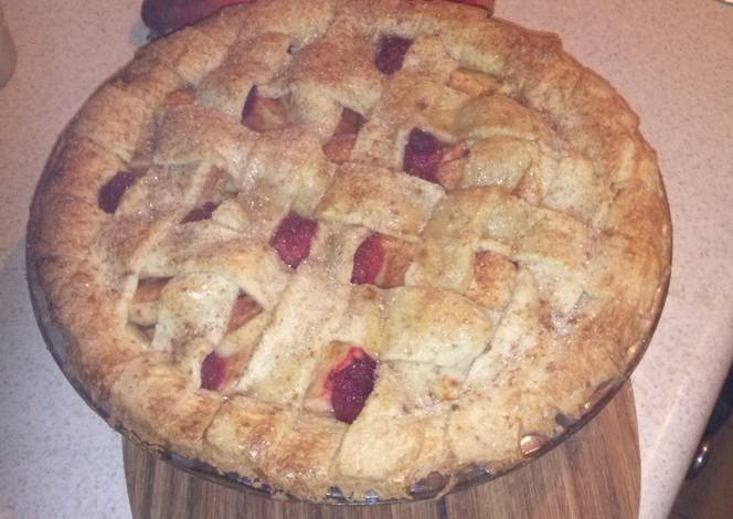 - THE TOPPING Brush the top of the sides of the tart shell. Roll another circle of dough that is slightly bigger than the tart case and drape it over the apples. Make a lattice if you prefer. Trim the lid to fit the tart, then pinch the lid into the brushed sides of the tart shell with fingers or a fork. Poke a few slits into the middle of the lid to allow steam to escape the pie. Brush the egg white over the pie lid then sprinkle with caster sugar.