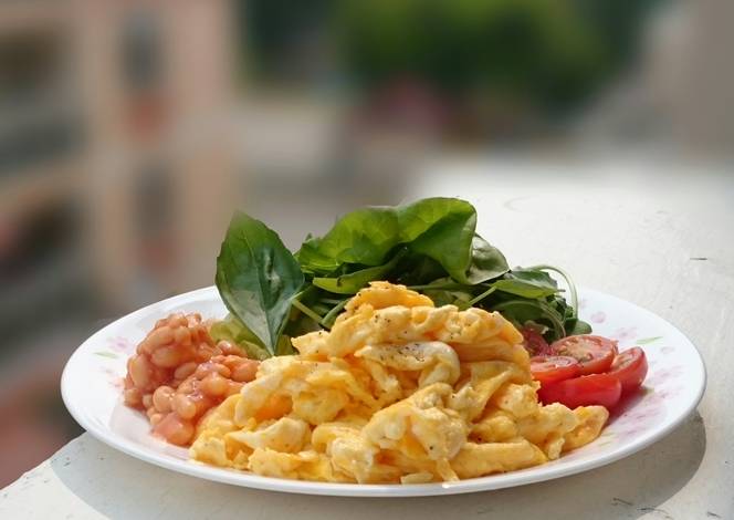 - Let it sit on the hot pan for 1 minutes then pour into a plate and serve with some warm Heinz red bean and tomato with mix salad of your choice top with any dressing if you like