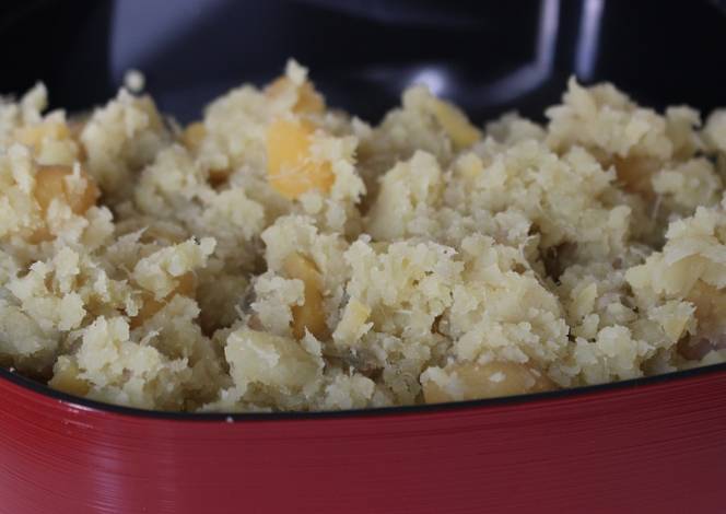 - Mix the chestnuts with the potato. Add the syrup and mix well.