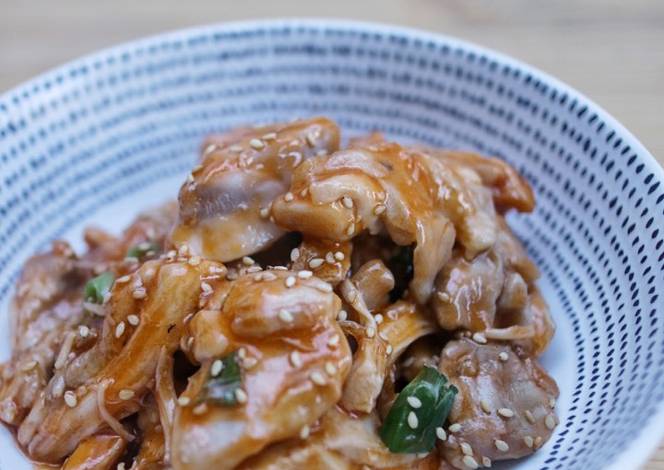 - In another pan, heat up the sauce until thicken. Pour sauce over the chicken and mix well for 2 mins.