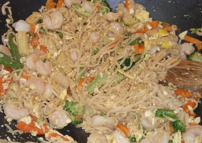 - Add, after the seasoning is the the wok, add the stemmed veggies and eggs along with the shrimp..and enjoy.