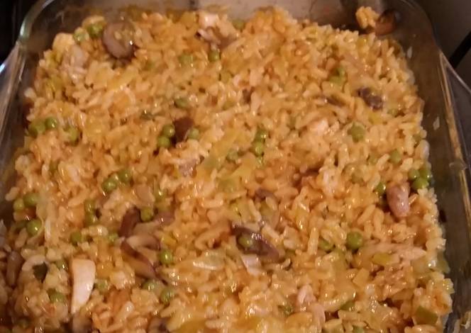 - Transfer into the oven dish, cover and place into the oven for 40 mins or until the rice is cooked. Once cooked mix in grated cheese if want.